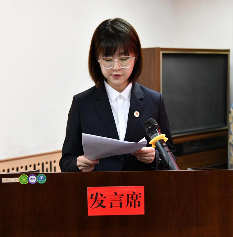 “全國五一勞動獎?wù)隆鲍@得者、勸業(yè)場后勤部副部長兼電工班班長周慧來進行交流發(fā)言